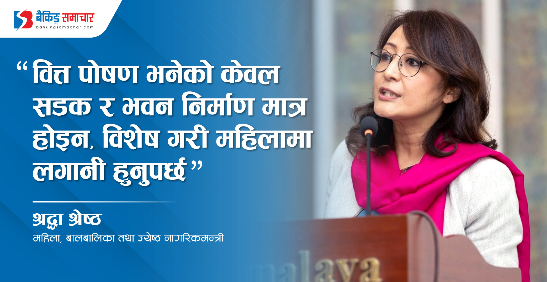 काठमाडौं – महिला, बालबालिका तथा ज्येष्ठ नागरिकमन्त्री श्रद्धा श्रेष्ठले जलवायु सहनशील वित्त पोषणले सडक भवनमै सीमित नगरी महिलाद्वारा सञ्चालित उद्यम, लैङ्गिक संवेदनशील पूर्वाधार र सामुदायिक संरक्षणमा लगानी गर्न आग्रह गरेका छन्। आज नेपाल पर्यटन बोर्ड र परिसूचक मिडियाद्धारा आयोजित ‘नेपाल पर्यटन गोष्ठी, २०८२’ मन्त्री श्रेष्ठले जलवायु परिवर्तनले पर्यटनमा प्रत्यक्ष असर पार्दा सबैभन्दा बढी मार महिलामाथि…
