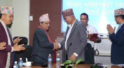 काठमाडौं – सुनको मूल्य अहिलेसम्मकै उच्च बिन्दुबाट तल झरेको छ । गत साताको शुक्रबार अहिलेसम्मकै उच्च बिन्दुमा पुगेको सुनको मूल्य आज आइतबार घटेर कारोबार सुरु भएको हो । नेपाल सुनचाँदी व्यवसायी महासंघका अनुसार गत शुक्रबार छापावाल सुनको मूल्य तोलामा १ लाख ४९ हजार ९०० रुपैयाँ थियो। महासंघका अनुसार आज छापावाल सुनको मूल्य तोलामा १ लाख…