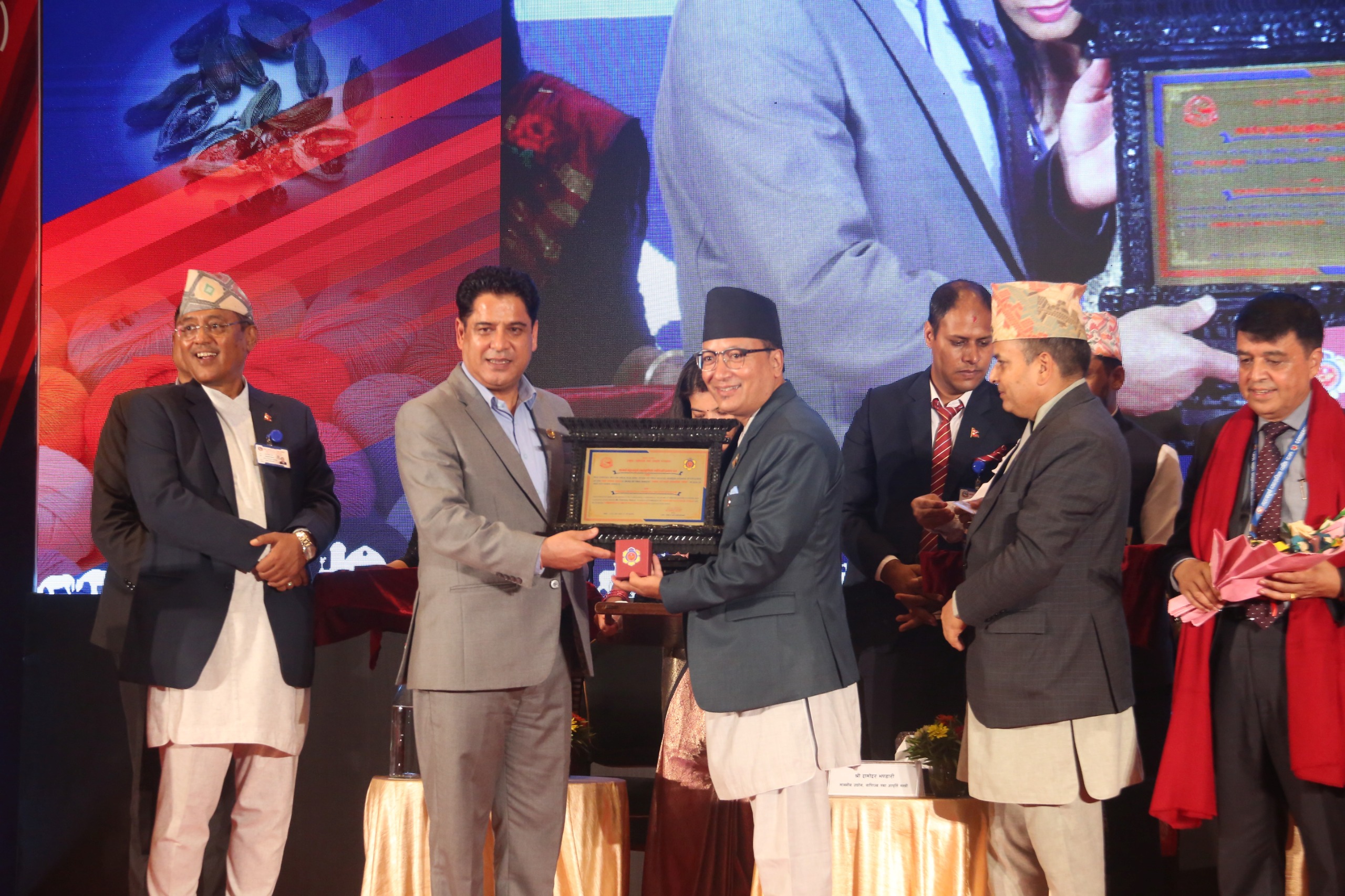 काठमाडौं– निजी क्षेत्र र व्यापार व्यवसायमा संलग्न उद्यमी व्यवसायहरूलाई प्रोत्साहित गर्ने नेपाल सरकारको नीति अनुरूप नेपाल सरकार, उद्योग वाणिज्य तथा आपूर्ति मन्त्रालयको आयोजना र नेपाल उद्योग वाणिज्य महासंघको सह–आयोजनामा भएको व्यावसायिक व्यक्ति सम्मान तथा सुशोभन कार्यक्रममा प्रतिनिधिमूलक व्यावसायिक महासंघ तर्फबाट हस्तकला उद्यमी व्यवसायीहरूको प्रतिनिधिमूलक छाता संगठन नेपाल हस्तकला महासंघका अध्यक्ष रविन्द्र शाक्य मानार्थ सम्मानबाट सुशोभित…