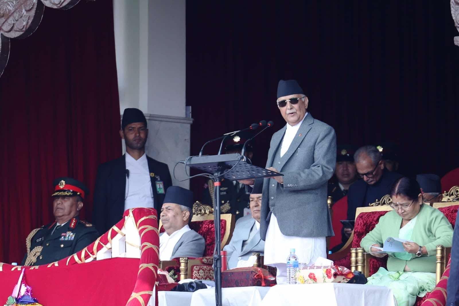 काठमाडाैं- प्रधानमन्त्री केपी शर्मा ओलीले वर्तमान सरकार लोकतन्त्रलाई पारदर्शी र अझ जवाफदेही बनाउँदै समाजमा व्याप्त असमानता, गरिबी र भ्रष्टाचारको चुनौतीलाई चिरेर अघि बढ्ने बताएका छन् । राष्ट्रिय प्रजातन्त्र दिवस–२०८१ का अवसरमा आज सैनिक मञ्च टुँडिखेलमा आयोजित समारोहलाई सम्बोधन गर्दै उनले युवाहरूलाई सशक्त बनाएर नै मुलुकलाई समृद्धितर्फ लैजाने सरकारको नीति रहेको बताए । 'लोकतन्त्रको उज्यालोकै कारण…