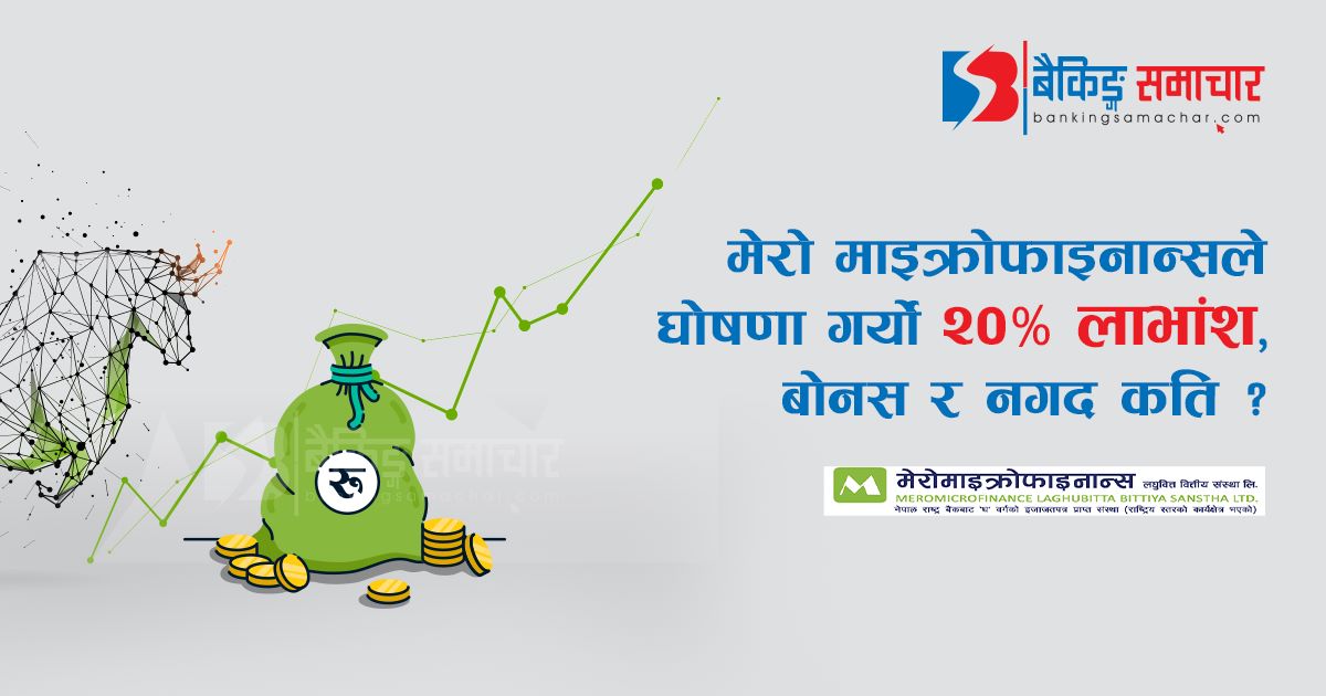 बैंकिङ्ग समाचार, काठमाडौं । सिवाईसी नेपाल लघुवित्त वित्तीय संस्था लिमिटेडले लाभांश वितरणको प्रस्ताव गरेको छ । कम्पनीले गत आर्थिक वर्ष (आव) २०७८/७९ को मुनाफाबाट हाल कायम चुक्तापूँजीको आधारमा कुल ३१ दशमलव ५८ प्रतिशत लाभांश वितरणको प्रस्ताव गरेको हो । कम्पनीले हाल कायम चुक्तापूँजी रू. १२ करोड १६ लाख ४१ हजारको आधारमा ३० प्रतिशत बोनस शेयर…