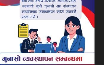 काठमाडौं – नेपाल राष्ट्र बैंकले बैंक तथा वित्तीय संस्थाको कामकारबाहीसम्बन्धी कुनै गुनासा भए संस्थागत माध्यमबाट